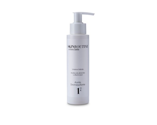 SKINROUTINE by Paloma Sancho Aceite Desmaquillante 150ML; limpia, hidrata y protege tu rostro; no te deja apariencia grasa. Este desmaquillante es un producto para el rostro que se transforma en leche limpiadora al tener contacto con el agua. Al aplicarlo logras disolver todas las impurezas y logras eliminar el maquillaje.